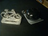 Tavallisia tarvikkeita (renkaat, työkalut, pumput, lukot, jarrupalat, vaijerit, lokasuojat, etukorit yms.) löytyy hyllystä.